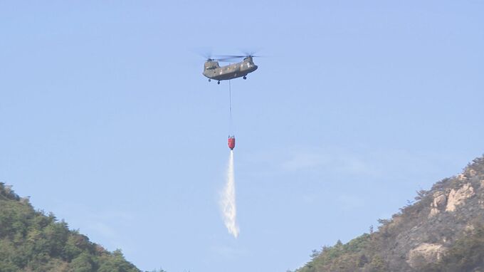 陸上自衛隊第13飛行隊は3日間、のべ11機のヘリコプターで周防大橋付近から水を汲み取り、計240回放水しました。急勾配の山地での火災で消防車が入れないことから、ヘリコプターからの放水が有効だったといいます。