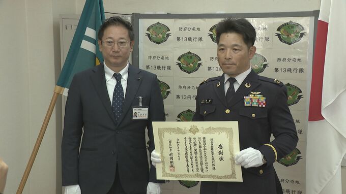 今年9月に山口県山口市で起きた山林火災の消火活動に協力した自衛隊に、7日、感謝状が贈られました。