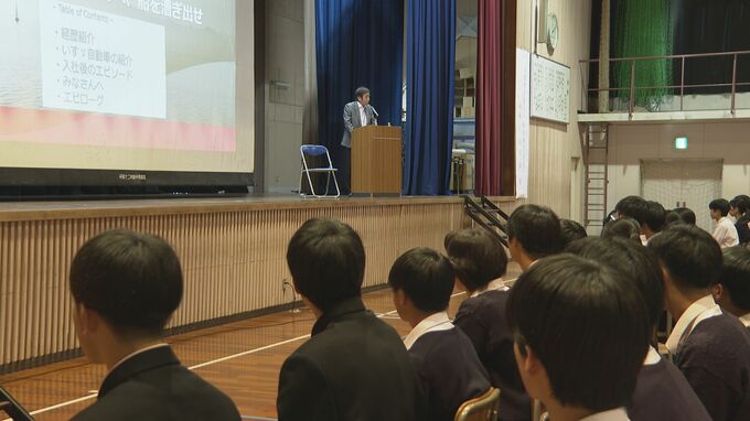 いすゞ自動車の片山正則会長が7日、母校の光高校(山口県光市)で講演会を行いました。