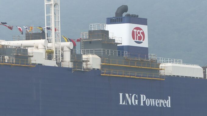 特徴は、液化天然ガスと軽油、2種類の燃料を切り替えて運転することが可能な点で、こうした船を建造するのは三菱重工業では、2隻目です。重油を燃料にした船と比べて二酸化炭素の排出量をおよそ25パーセント抑え、硫黄酸化物の排出量をほぼゼロにできるということです。