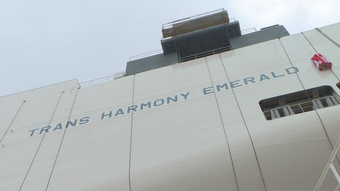 総トン数はおよそ4万9500トン、全長、およそ195メートルで乗用車ならおよそ3000台を積み込めるということです。