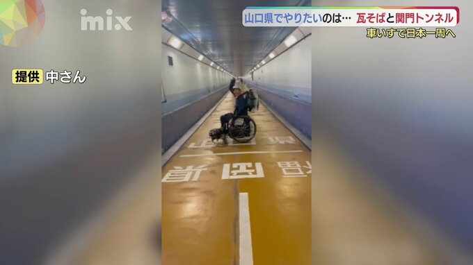 出発からおよそ1時間、関門トンネルに到着しました。福岡県側からトンネルを渡って以来、およそ1年ぶりです。山口県でやりたかったことができました。トンネル内でも中さんに声をかけてくれる人がいました。