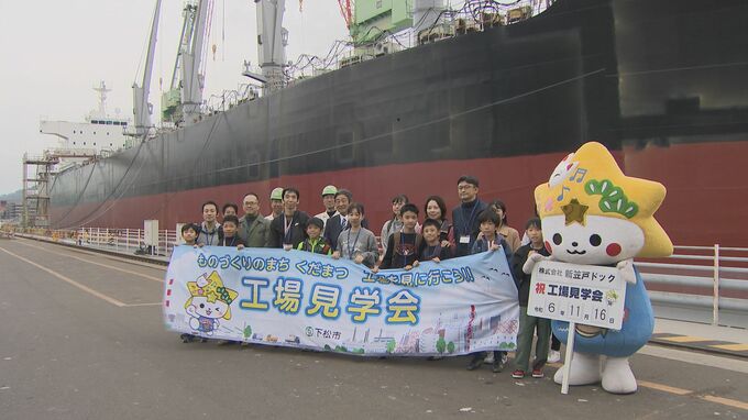「ものづくりのまちくだまつ産業見学ツアーin笠戸島」には、市内の小中学生と保護者およそ60人が参加しました。