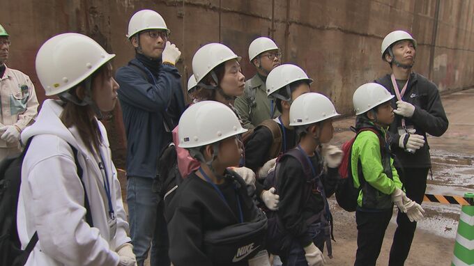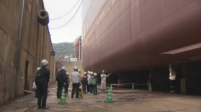新笠戸ドックを訪れた一行は全長およそ200メートルの貨物船の建造現場を見学し、地元で造られた船が世界の海を行き来していることなどを教わりました。