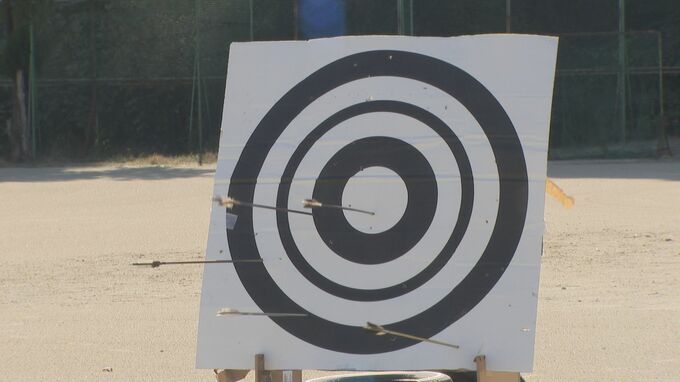 時折、風が強まりましたが、3回目の挑戦となる3年生の中には、これまでの経験を生かして、的をしっかりと射ぬく生徒もいました。