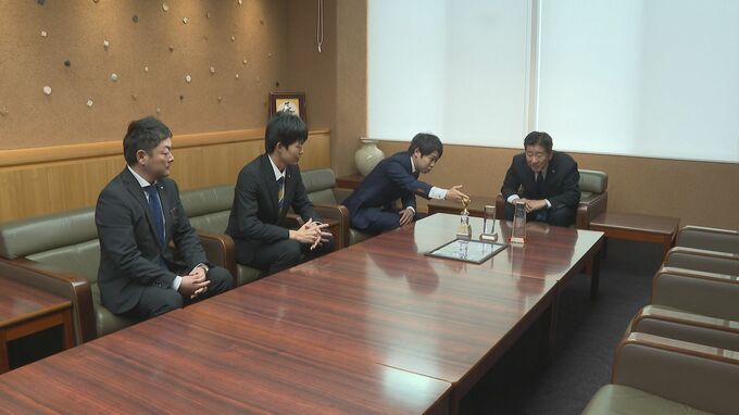 長門青年会議所(山口県長門市)が制作した短編映画「TAWARAYAMA」が、全国の青年会議所で日本一になり、市長に受賞を報告しました。