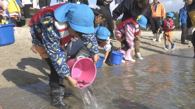 自然や命を大切にする心を育んでもらおうと18日、山口きらら博記念公園(山口県山口市)で、地元の園児らがキジハタの稚魚を放流しました。