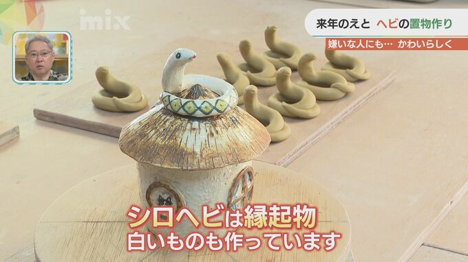 「シロヘビは縁起物とかいいますので、白いものも作ってますので、そばに置いていただいたらいいなと思っています」