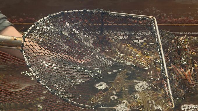 今年は水温が高く育てるのに苦労したそうですが、エサをしっかり食べ、丸みのある大型のエビが育ちました。