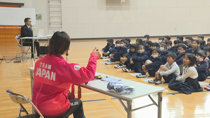 パリパラリンピックの金メダリストが17日、山口県山陽小野田市の小学校で子どもたちと交流し、目標を決めて努力することの大切さを話しました。