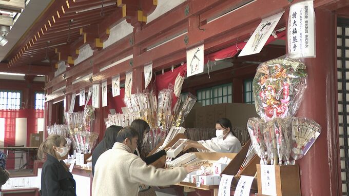 熊手や破魔矢など正月の縁起物は今月25日から配り始めていて、それぞれ3000本が用意されているということです。