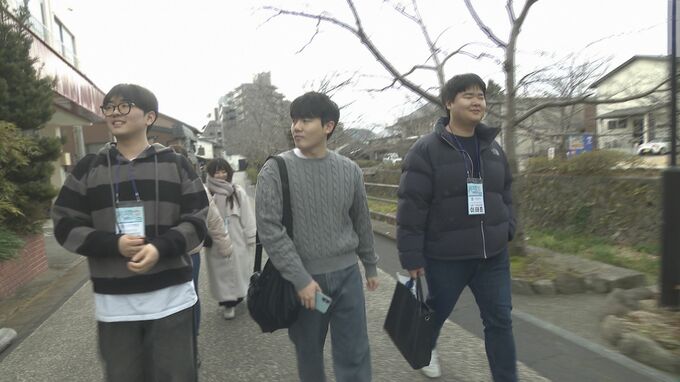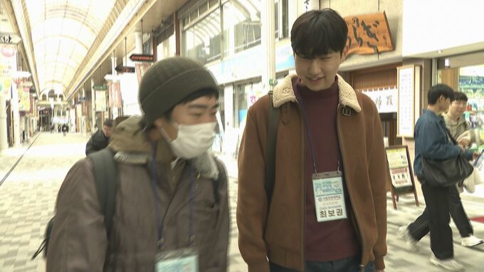 山口県立大学と韓国の大学生が地域の魅力を発見しようと16日、山口市を散策し交流を図りました。