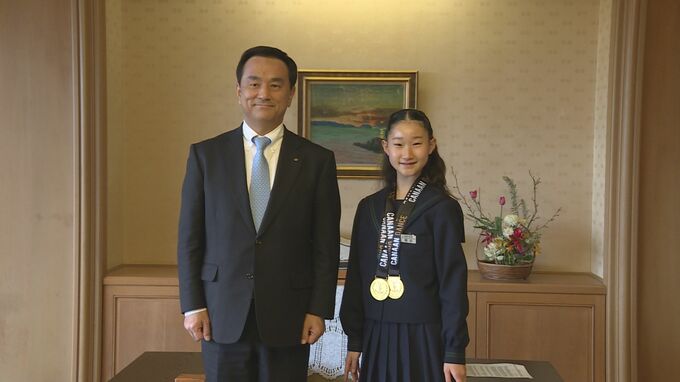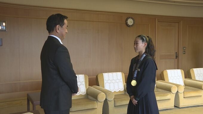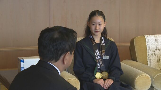 バレエの国際大会2部門で優勝した山口県宇部市の中学生が16日、村岡嗣政知事に報告しました。