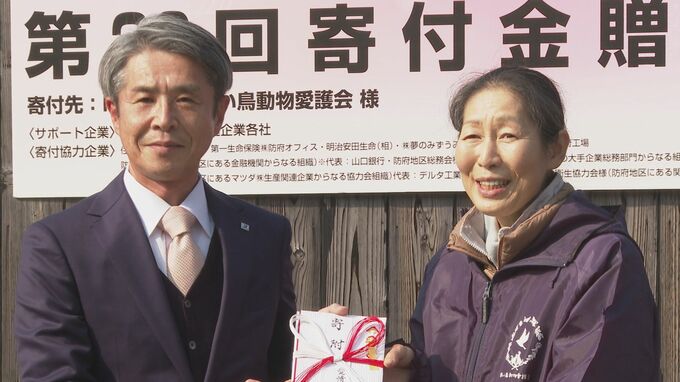 山口県防府市内の企業で作る団体が22日、動物の保護活動を行うNPO法人にフリーマーケットの売上金を寄付しました。
