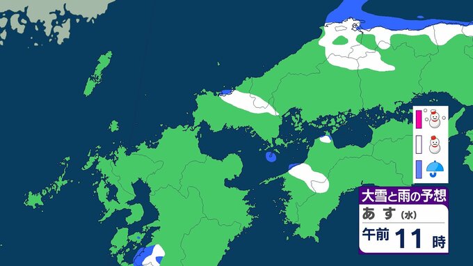 29日にかけて山口県山地で20センチ、平地7センチの積雪予想 九州北部地方(福岡県・山口県・佐賀県・長崎県・熊本県・大分県)大雪に関する情報を発表 雪のシミュレーションも(28日午後4時)