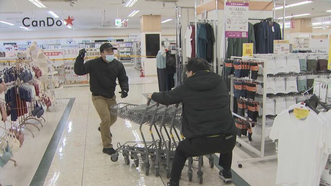見つけた従業員がすぐに警察に通報。ほかの従業員が、さすまたやショッピングカートを使って、犯人の動きを止めます。