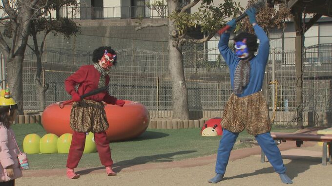 山口県周南市の保育園にはひとあし早く「鬼」が登場し、園児たちが豆まきをしました。
