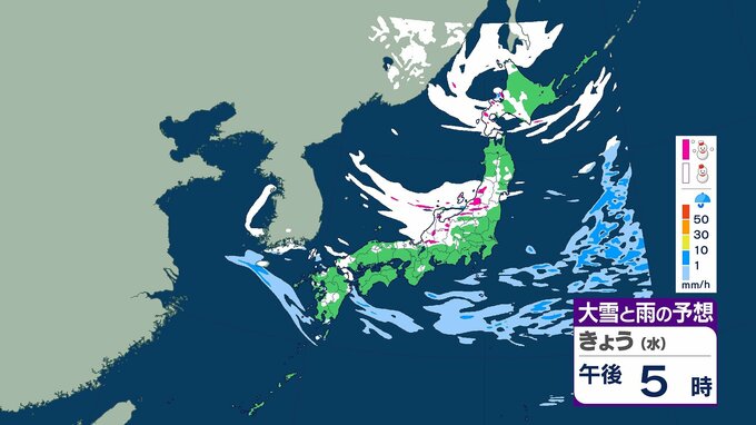 5日夜の雨と雪のシミュレーションを見る