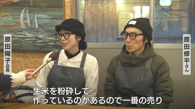 「やっぱり下関といえばフグ。下関の内日のお米、生米を粉砕して作っているのが一番の売りです」