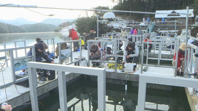 山口県下関市にある、西日本有数のワカサギ釣りの名所・豊田湖で9日、時間内に釣ったワカサギの重さを競う大会がありました。