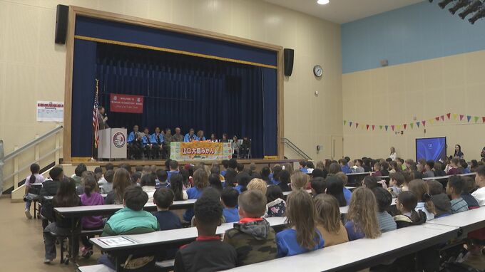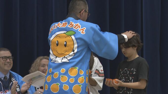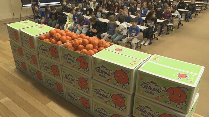 7日、アメリカ軍岩国基地(山口県岩国市)の小学校に周防大島産のミカンが贈られました。