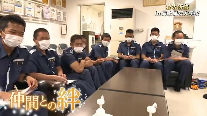 仲間との絆を深めながら。過酷な訓練を乗り越えていきます。あこがれの潜水士まであと少しです。