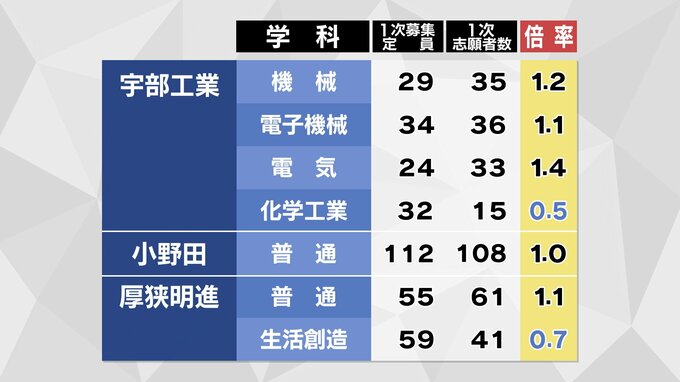 【全校掲載】山口県公立高校入試2025 志願倍率発表 徳山理数1.4倍、山口文理探究1.8倍 下関西文理探究1.2倍、宇部文理探究1.1倍 全日制1.01倍(2月21日発表) 2025年2月21日(金) 16:25 国内 宇部普通は1.4倍 文理探究は1.1倍