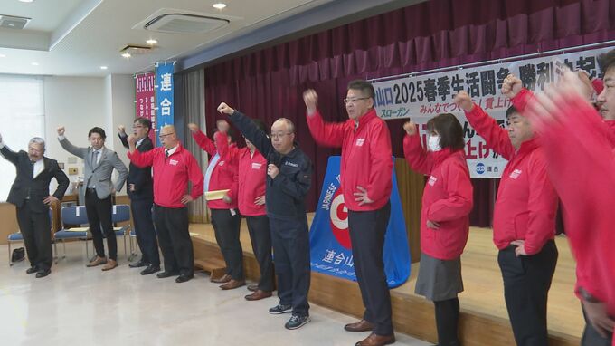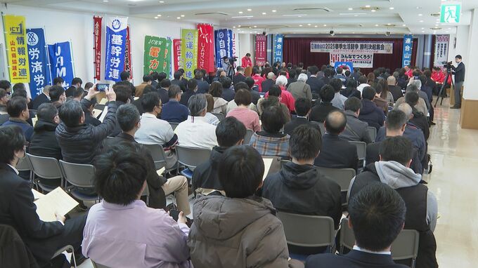 山口県内最大の労働団体・連合山口が1日、春闘の決起集会を開き、賃上げに向けて組織の総力を結集して取り組むことを確認しました。
