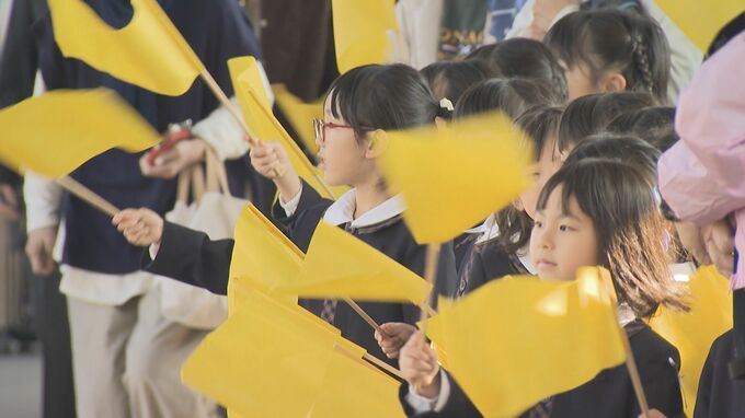 県鴻城高校付属幼稚園の園児が、新幹線を見送りました。