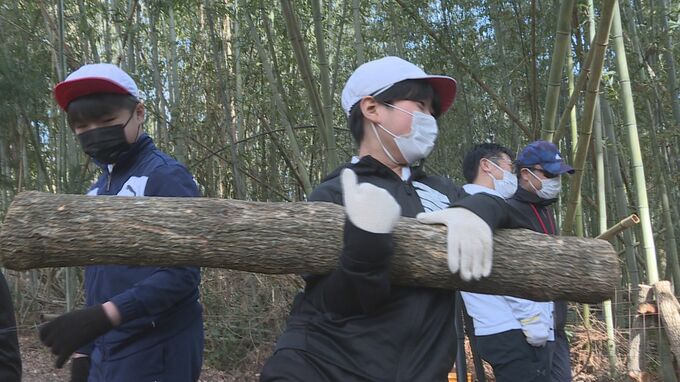 体験したのは阿武小学校の5年生20人で、シイタケ栽培をしている小野太久さんの山に入りました。