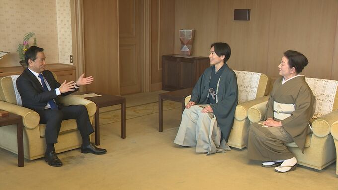 日本舞踊家の花柳梨道さんが、知事のもとを訪れました。