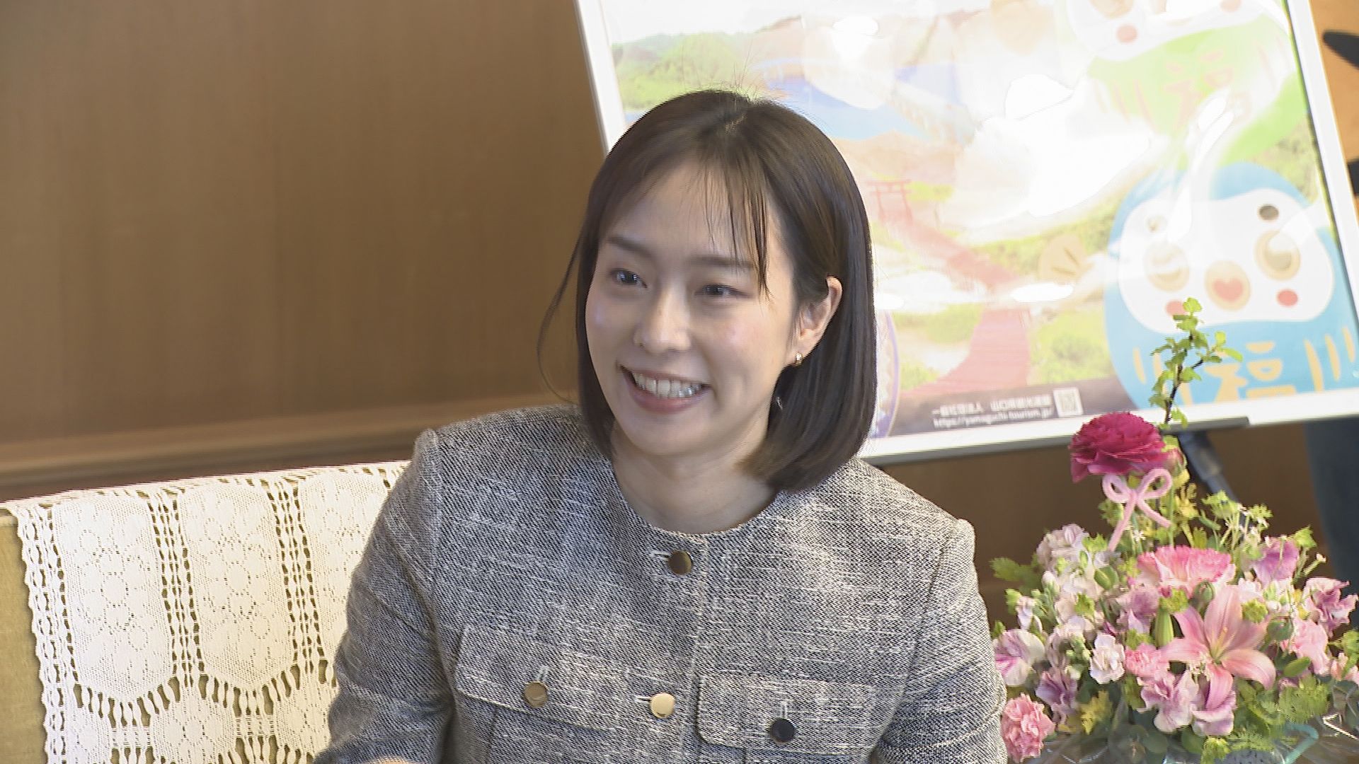 石川佳純さんが村岡知事を訪ね、完成した観光プロモーション動画を披露しました。