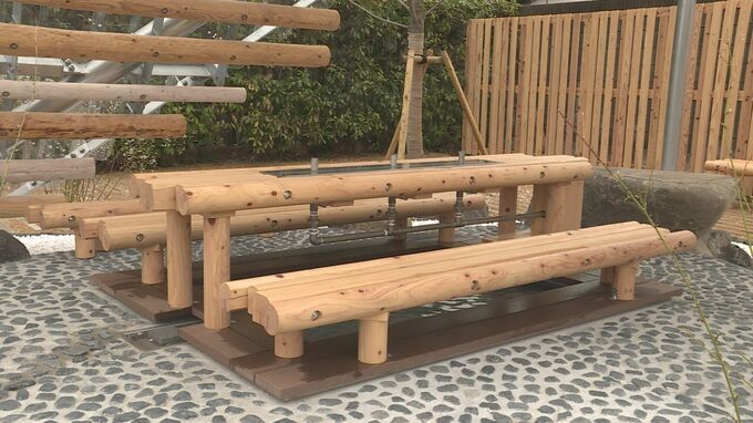 完成した「癒やしの庭」にはおよそ38度の手湯や足湯のほか、ベンチなどがあります。