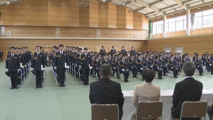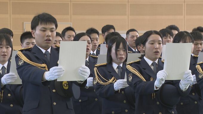 警察学校に入校したのは、警察官93人と一般職員12人の合わせて105人です。