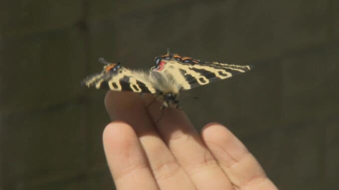 このギフチョウを八代小学校の3・4年生が、卵から1年かけて育ててきました。