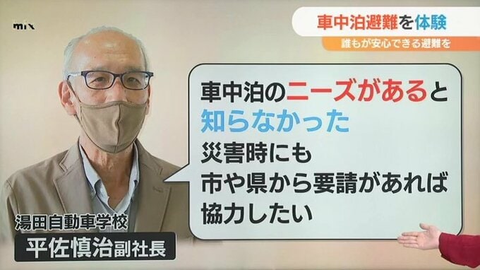 今回その場所を提供してくださった湯田自動車学校の平佐慎治副社長は、「車中泊のニーズがあるというのを知らなかったん。災害時に県や市から要請があれば自動車学校の敷地を提供したい協力したい」と言われていました。
