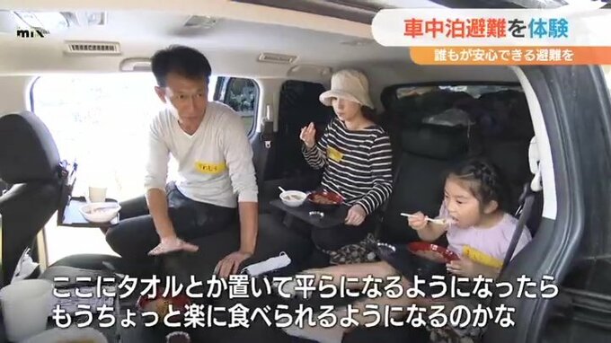「真ん中の子がアレルギーがある。アレルギーがあると災害が起きたときに食事も気になりますし、ぜんそくもあるので、ちり・埃が気になったら、もしかしたら車中泊を選ぶかなと思って参加してみました」