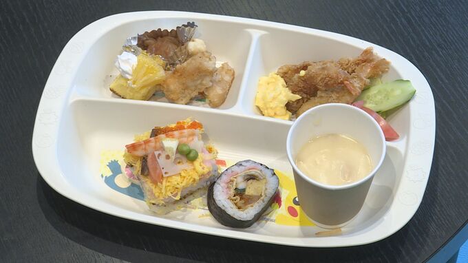 市内のすし店「明徳」が特製の箱ずしやのり巻き、シチューを提供しました。