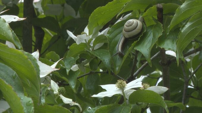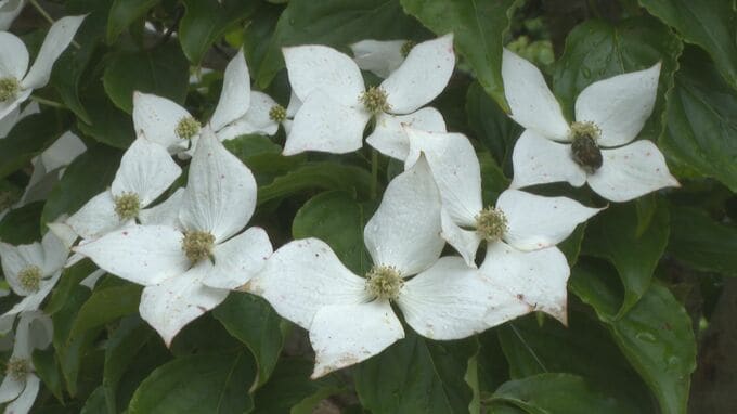 山口県萩市の公園で、白いヤマボウシの花が見ごろを迎えています。
