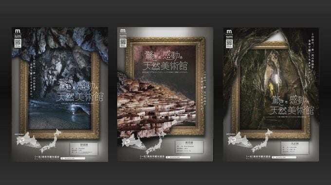 「自然の美術館」をテーマに、美祢市の3つの鍾乳洞が描かれています。
