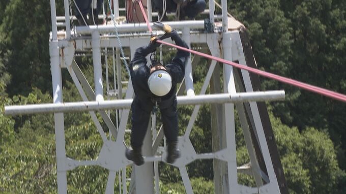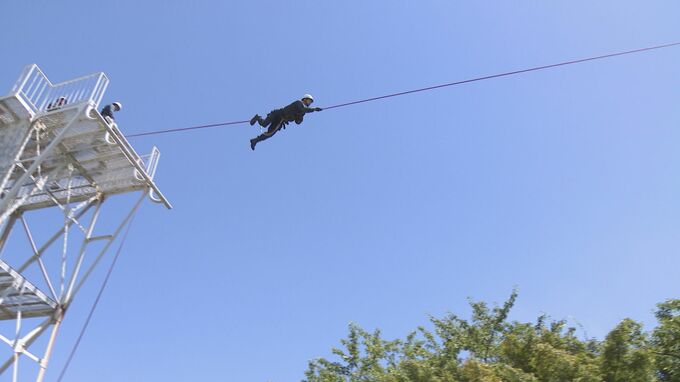隊員は柔道や剣道のほか防護盾を使った制圧訓練、救出訓練などに取り組んでいます。29日にロープを使った救出訓練が公開されました。