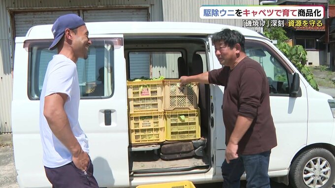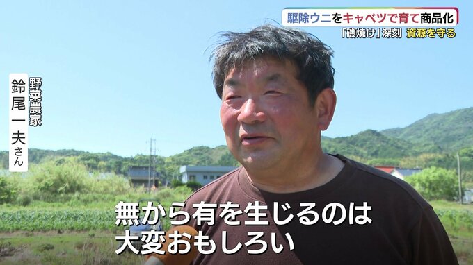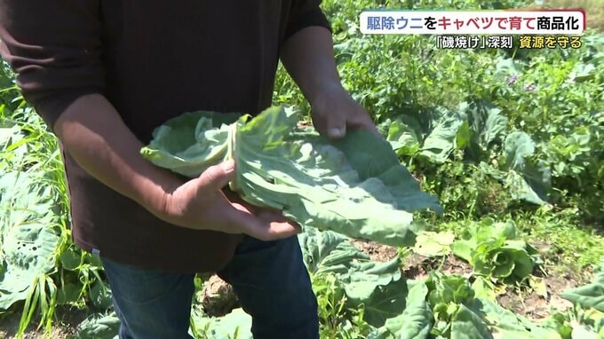 農家の鈴尾さんはウニにキャベツを食べさせる取り組みに興味を持ち、協力することにしました。比較的、涼しい山あいの畑で、夏場もキャベツを育てているため一年中、提供できるそうです。