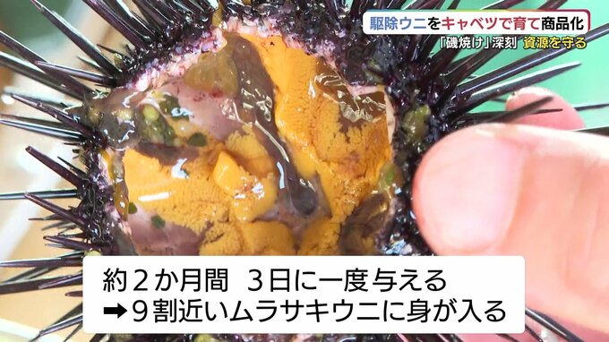 およそ2か月間、3日に一度のペースで与え、9割近いムラサキウニに身が入ったということです。
