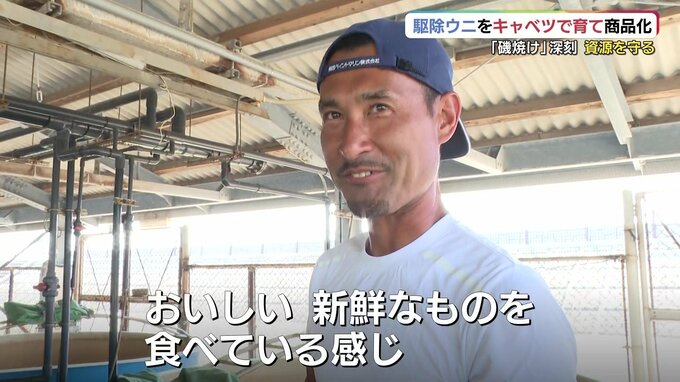「商品にするにはちょっと弱いですけど、基本的にはこの状態からキャベツをあげて、2か月ぐらいで身をしっかり入れて商品にするという感じですね」