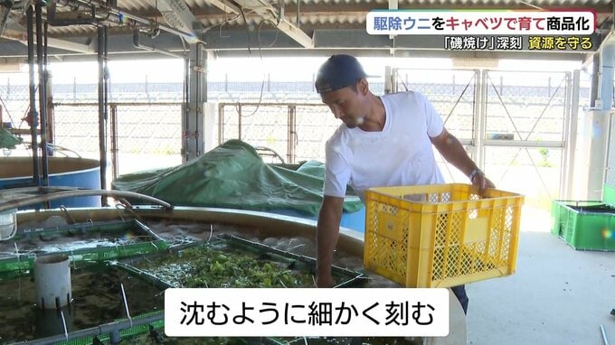 福本さんは4月から、身の少ないウニを陸上の水槽で育て直す「畜養」に挑戦しています。