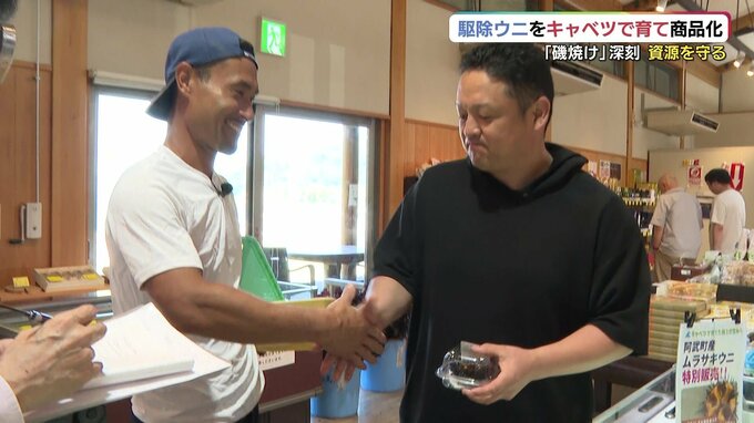 キャベツで育てたウニのおいしさを知ってもらおうと、道の駅阿武町で試験的に販売しました。