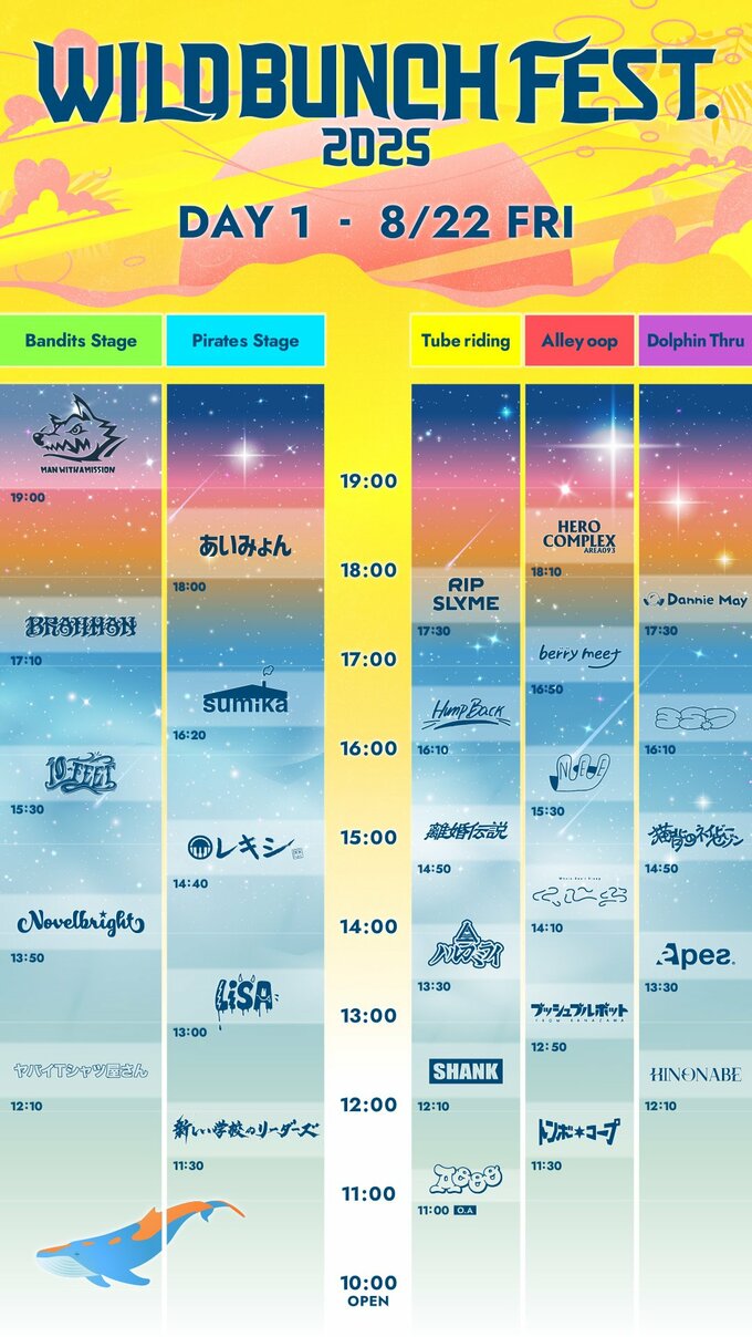 ワイルドバンチ(ワイバン)出演者は?西日本最大級の野外音楽イベント「WILD BUNCH FEST.2025」22日開幕!出演アーティスト&タイムテーブルをチェック! 2025年8月22日(金) 06:00 国内 タイムテーブル【8月22日(金)/DAY1】