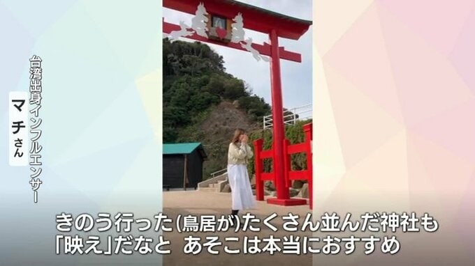 「やっぱり台湾の方はみんなインスタ映えの写真を撮ったりするのが好きですので、きのう行った神社、たくさん並んでいる神社に行ってとってもインスタ映えだなと思って、あそこは本当におすすめと思います」