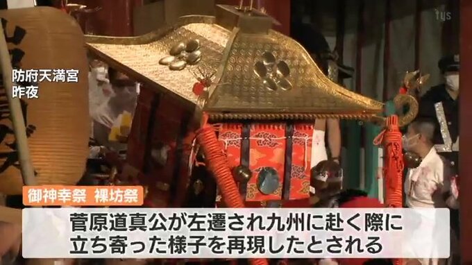 御神幸祭・裸坊祭は、菅原道真公が左遷され、九州に赴く際に防府の地に立ち寄った際の様子を再現したとされます。