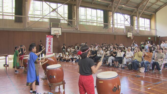 今日の発表会では旧束荷小の「束荷神舞」と旧塩田小の「石城太鼓」が統合して初めて披露されました。